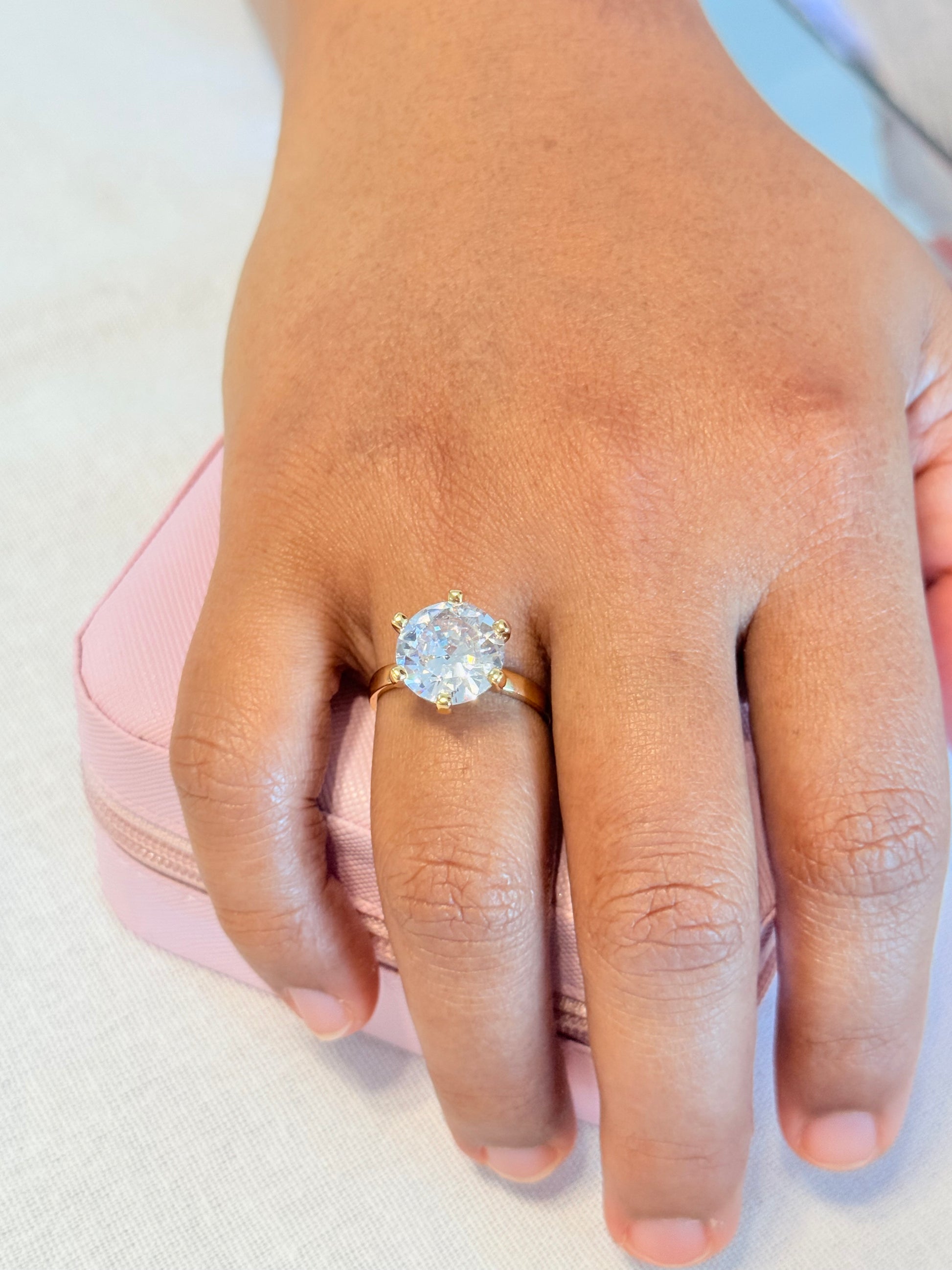 O Anel Solitário Banhado a Ouro 18K da Luciane Pacheco Semijóias é a definição de elegância atemporal. Sua zircônia central lapidada em corte brilhante reflete a luz com intensidade, simbolizando o brilho do merecimento e da força feminina.