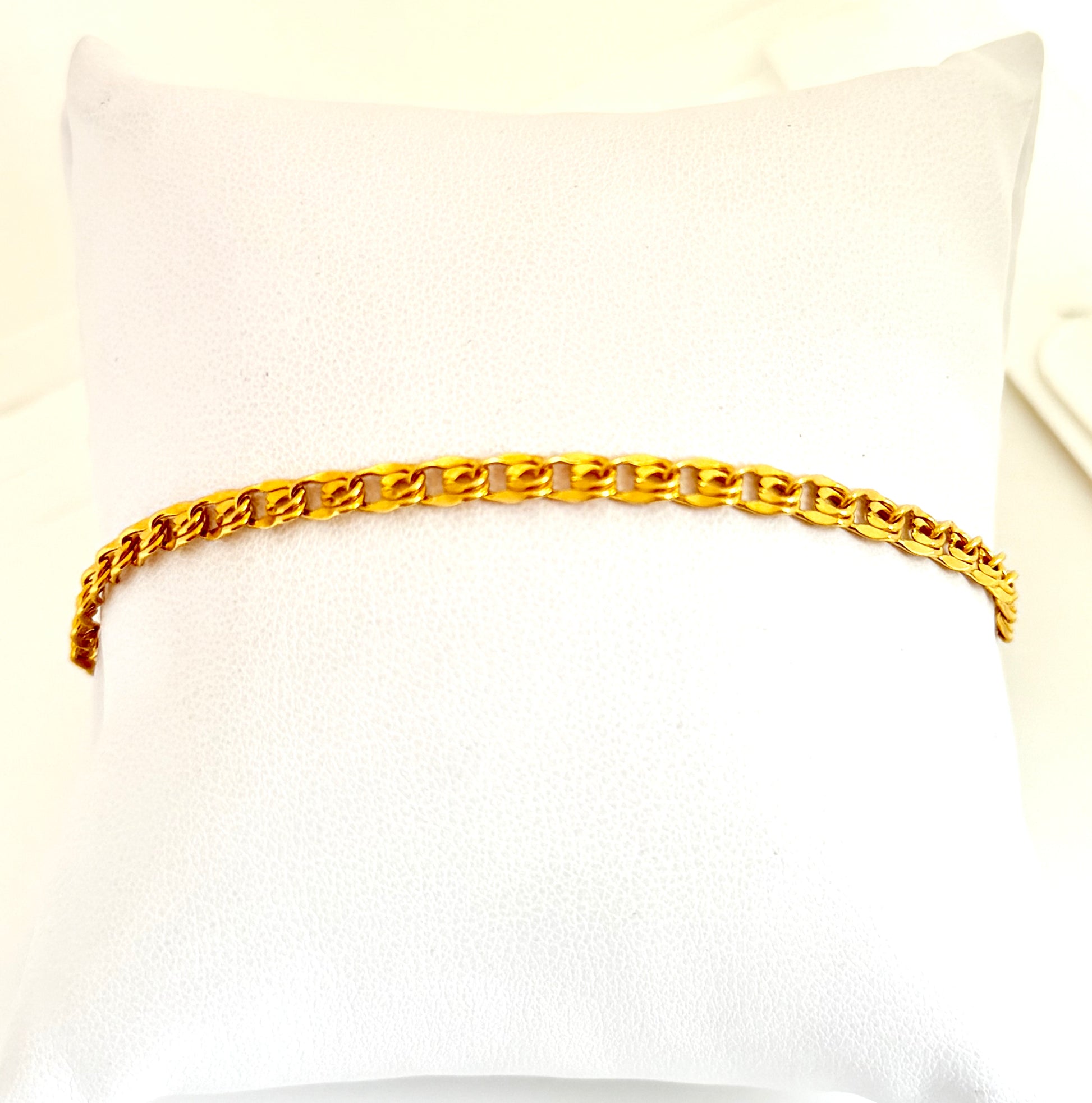 Com design tradicional e elegante, esta pulseira de elos é um verdadeiro curinga no porta-joias. Seu acabamento impecável em banho nobre de ouro 18k garante brilho intenso e sofisticação atemporal, perfeita para uso diário ou ocasiões especiais.