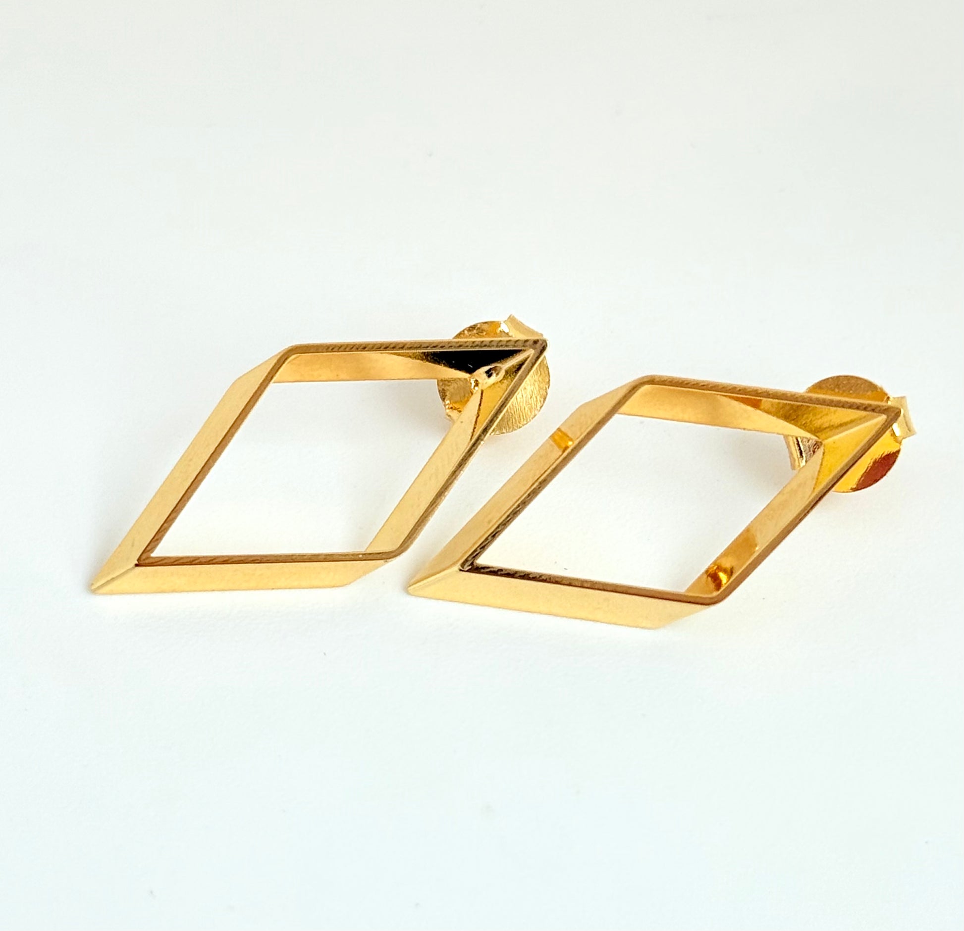 Brinco Geométrico Losango Vazado com Banho de Ouro 18k