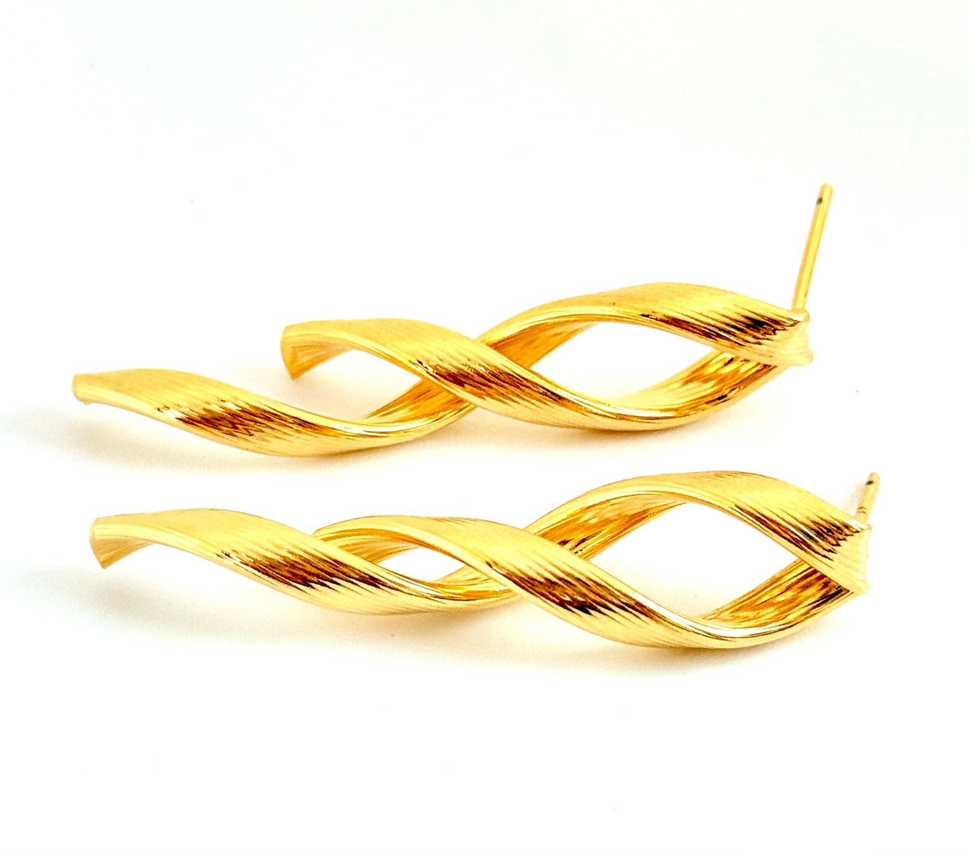 Brinco Torcido Alongado com Banho de Ouro 18k
