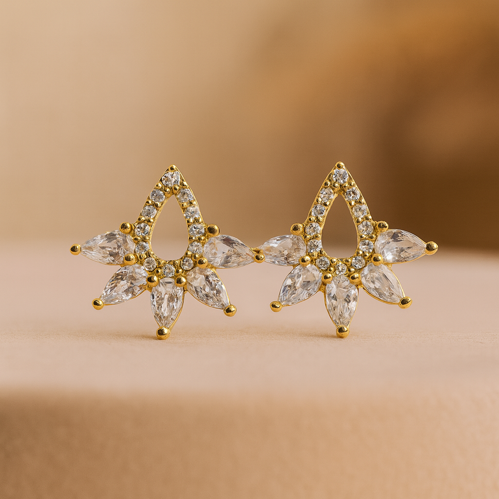 - Design: Formato de gota vazada com pétalas de zircônias, criando um efeito floral sofisticado.