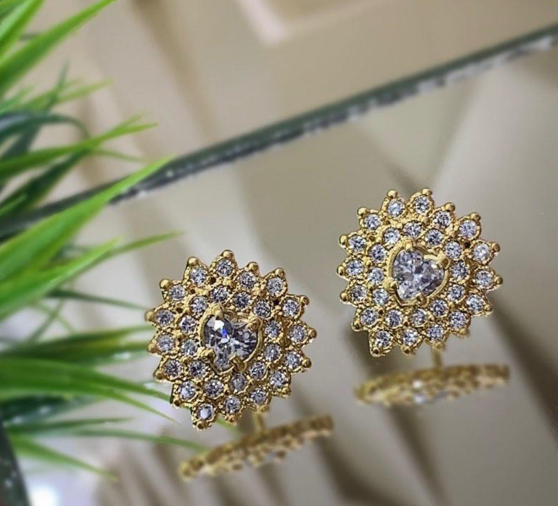 Brinco Flor de Coração Banhado a Ouro 18k ✨🌸