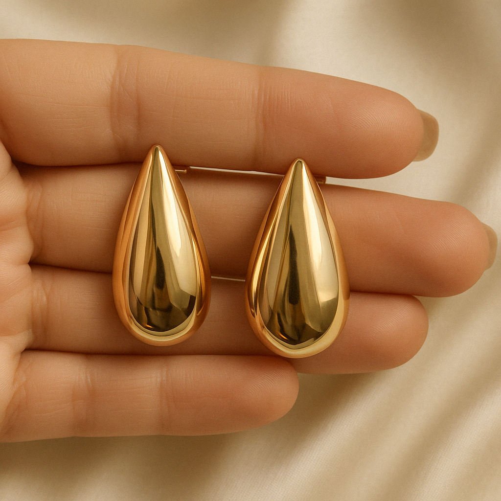 Imponente e sofisticado, o Brinco Gota Lisa é uma peça que traduz modernidade em cada detalhe. Confeccionado em semijoia com banho em ouro 18k, possui design alongado em formato de gota, com acabamento liso e polido espelhado, garantindo brilho intenso e elegância atemporal.