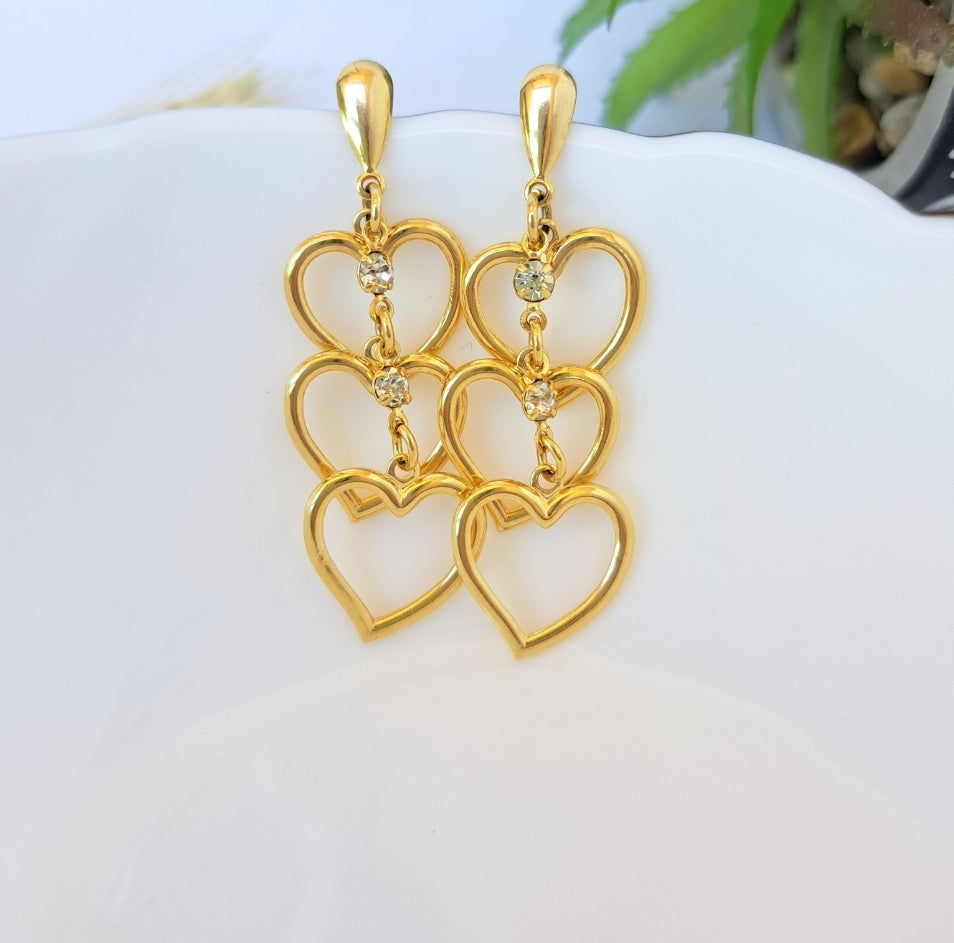 Brinco Longo Corações com Ponto de Luz