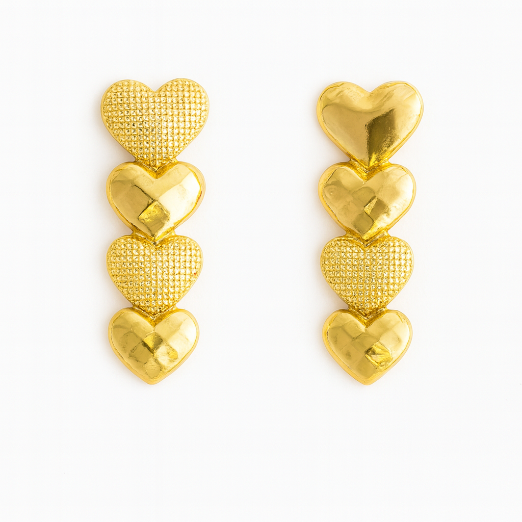 Com design composto por três corações em texturas contrastantes e banho em ouro 18K, ele traz brilho e movimento com elegância.