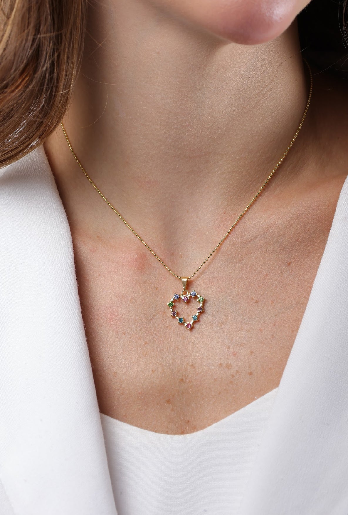 - Pingente: Formato de coração com zircônias coloridas (Rainbow)