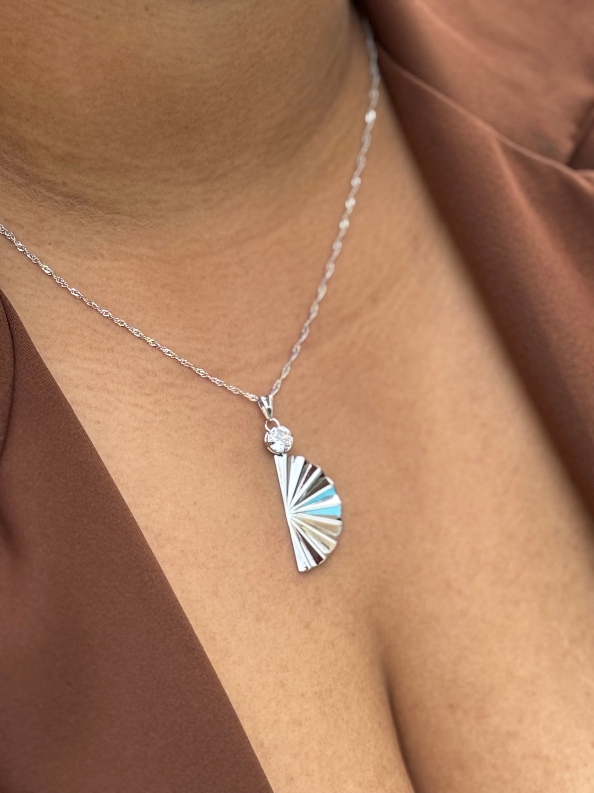 Colar leque no Ródio
