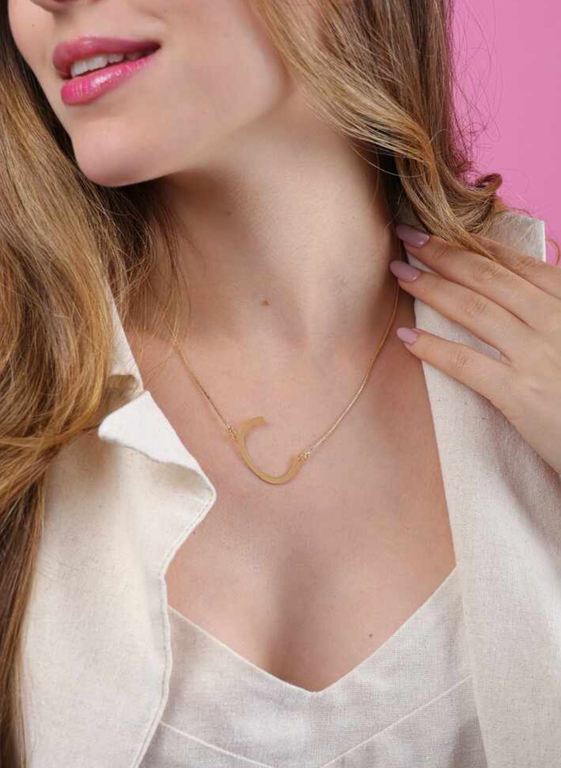 Colar com pingente em formato de letra, símbolo de identidade e expressão pessoal.