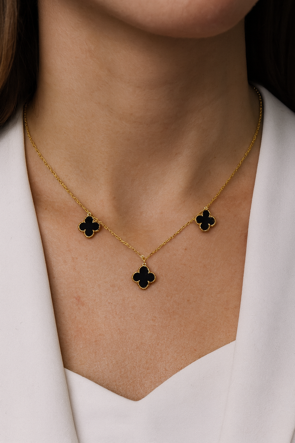 Colar Banhado a Ouro 18k com Pingentes de Trevo Preto